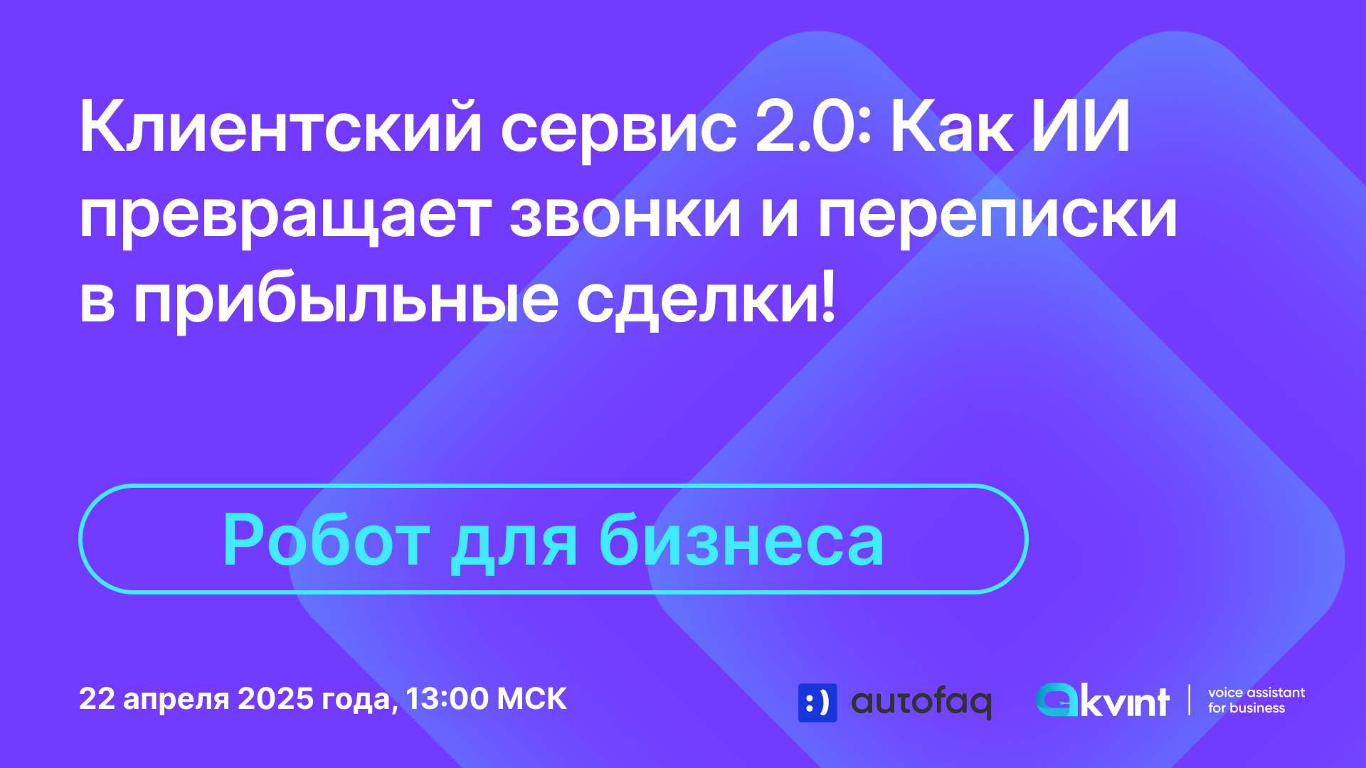 Приглашаем вас на совместный вебинар компаний КВИНТ и AutoFAQ, который изменит ваше представление о клиентском обслуживании! Если вы руководитель клиентского сервиса в банке, ритейле, ресторанах, автосалонах, медцентрах или любом другом сетевом бизнесе, то этот вебинар создан именно для вас!